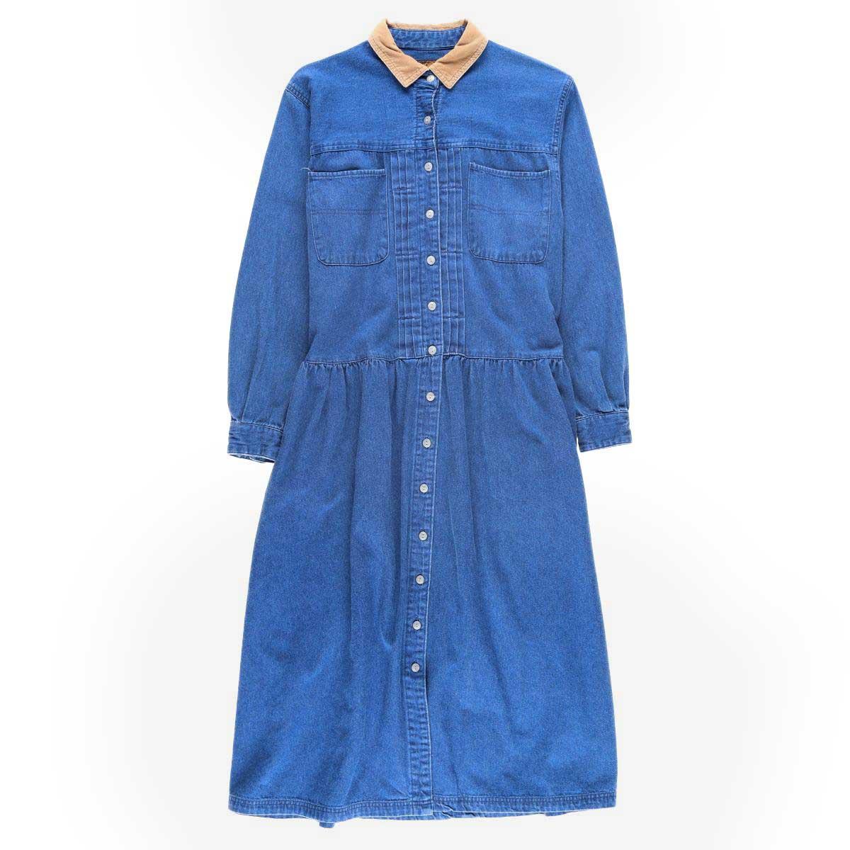 エディーバウアー Eddie Bauer コーデュロイ襟 デニム シャツワンピース レディースL /wbe3087 【中古】 【190615】