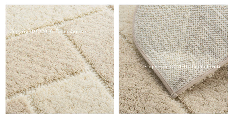 ⇒ ギフト対応について サイズ 約 縦70×横70cm アールから手前 約53cm 素材 アクリル100%(抗菌・防臭吸水素材) 裏面-すべりにくい加工あり カラー ベージュ 原産国 日本 ご注意 ・ワックスやコーティングされている床面に敷くと、マットの裏加工材が柔らかくなり付着することがあります。
